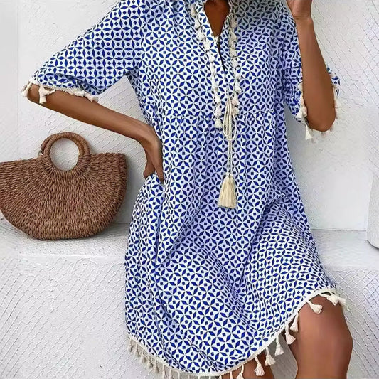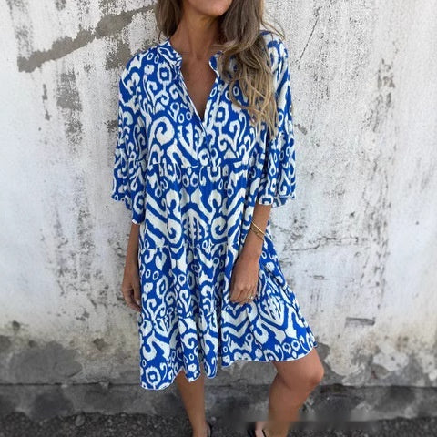 Eline – Trendy zomerjurk met opvallende print en elegante V-hals