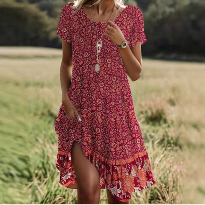 Women's Round Neck Short Sleeve Digital Positioning Printing Dress
